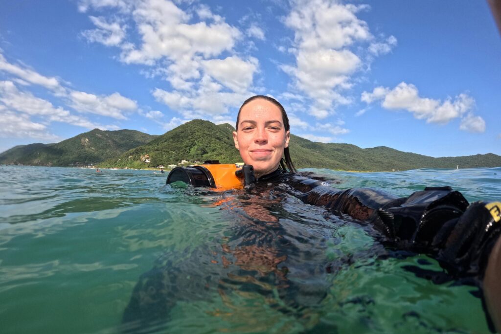 A arte em contato com a natureza nos lembra que nem tudo precisa ser controlado para ser belo, especialmente a criação artística. Muitas vezes, é justamente a ausência de controle que revela a potência do momento. O mar não se adapta à lente. É a lente que aprende a dançar com o mar, em um movimento que não é ensaiado, mas vivido no improviso, na escuta e na entrega.